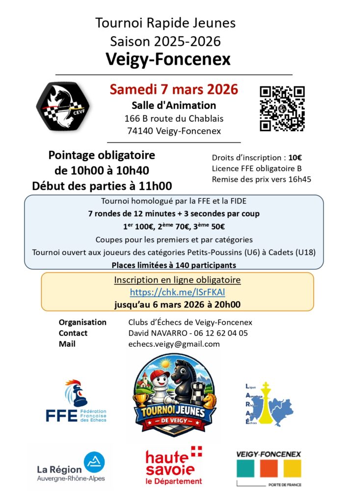 1er Rapide Jeunes de Veigy : https://www.helloasso.com/associations/club-d-echecs-de-veigy-foncenex/evenements/rapide-jeunes-de-veigy-foncenex-2026
